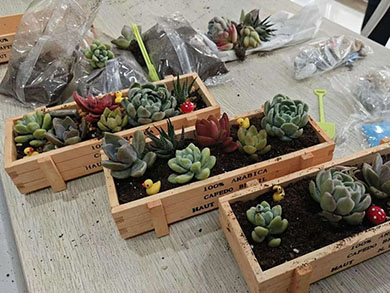 在现代科技展示后,随机而来的是“共植多肉,绿满心田”环节,将活动的温馨与绿意延续。我们特别准备了轻便易用的适老化园艺工具套装,长者们兴致勃勃地挑选自己心仪的多肉品种,在各位志愿者与工作人员的指导、协助下共同完成了填土、栽种、铺面、装饰。大家一边互相交流种植心得,一边欢声笑语不断。不一会儿,一盆盆形态各异、生机勃勃的多肉盆栽便在长者们手中诞生,为他们的生活空间增添了盎然绿意与情趣。肥厚饱满,错落有致的多肉,像一团团凝固的晚霞,承载着最温馨的陪伴,是岁月静好最生动的注脚。