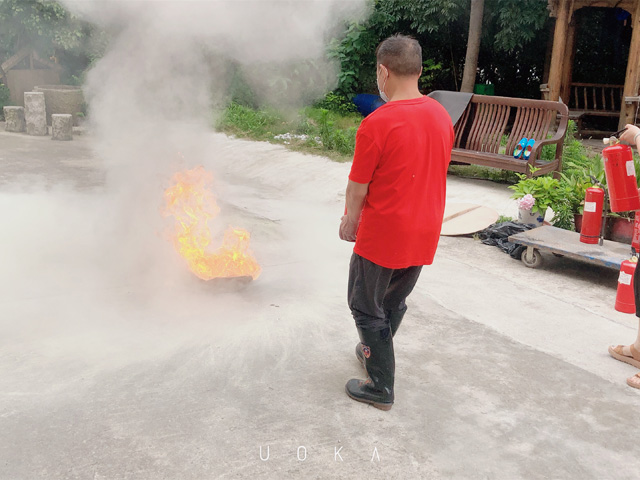 灭火器的种类有很多,院内使用的灭火器是干粉灭火器,可以及时迅速有效地消灭火焰。使用灭火器需要站在上风口,距离火源3-5米左右,在保证自身安全的同时进行灭火。