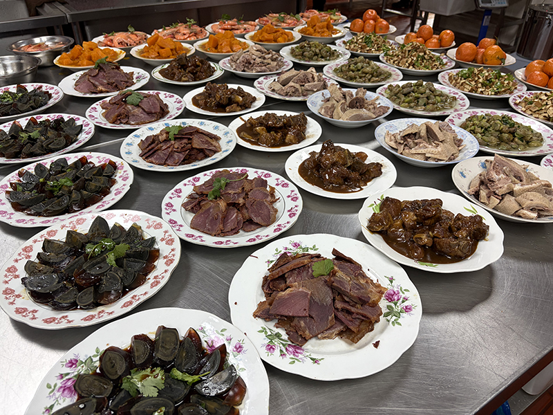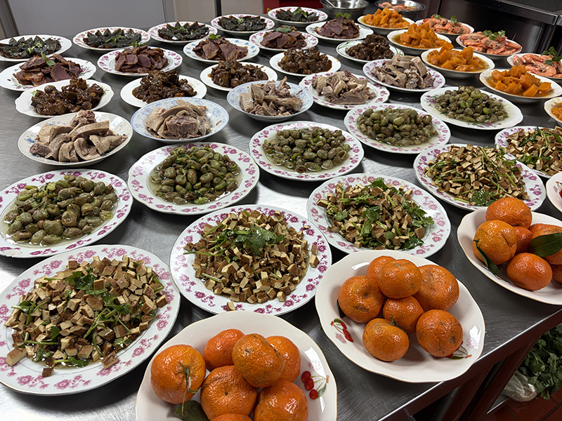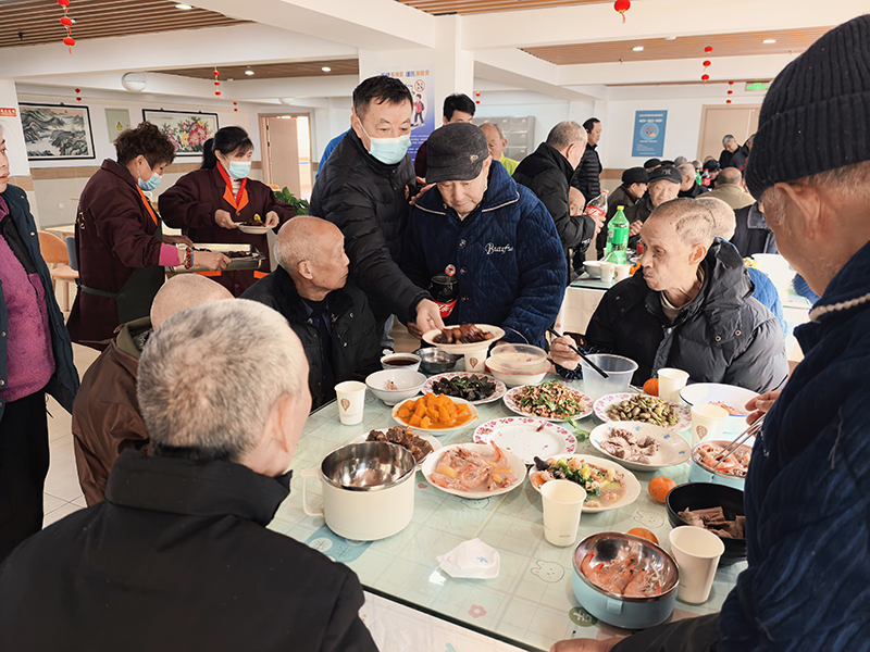 餐厅里,自理老人们围坐圆桌,桌上摆满了丰盛可口的菜肴。鲜红油亮的油爆大虾、软糯香甜的桂花元宵、寓意团团圆圆的清炒虾仁、地地道道的蒜香羊肉,还有热气腾腾的全家福砂锅,一道道色香味俱全的菜品,不仅满足了老人们的味蕾,更温暖了他们的心田。