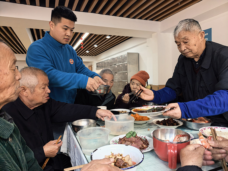 “阿姨,这是您最爱吃的虾仁,我帮您吹凉一点。”护理员轻声细语,一举一动尽显关爱。这个自然而然的动作,恰似年夜饭桌上最动人的年画,盛放的不仅是佳肴,更是被仔细呵护的晚年时光。