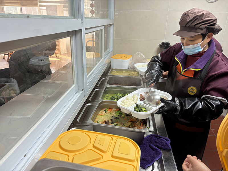 对于行动不便、需要卧床休养的护理老人,护理员们特别安排了送餐到床前的服务。他们小心翼翼地将饭菜送到每位老人面前,还贴心协助进食,确保每一位老人都能享受到这顿充满爱意的年夜饭。